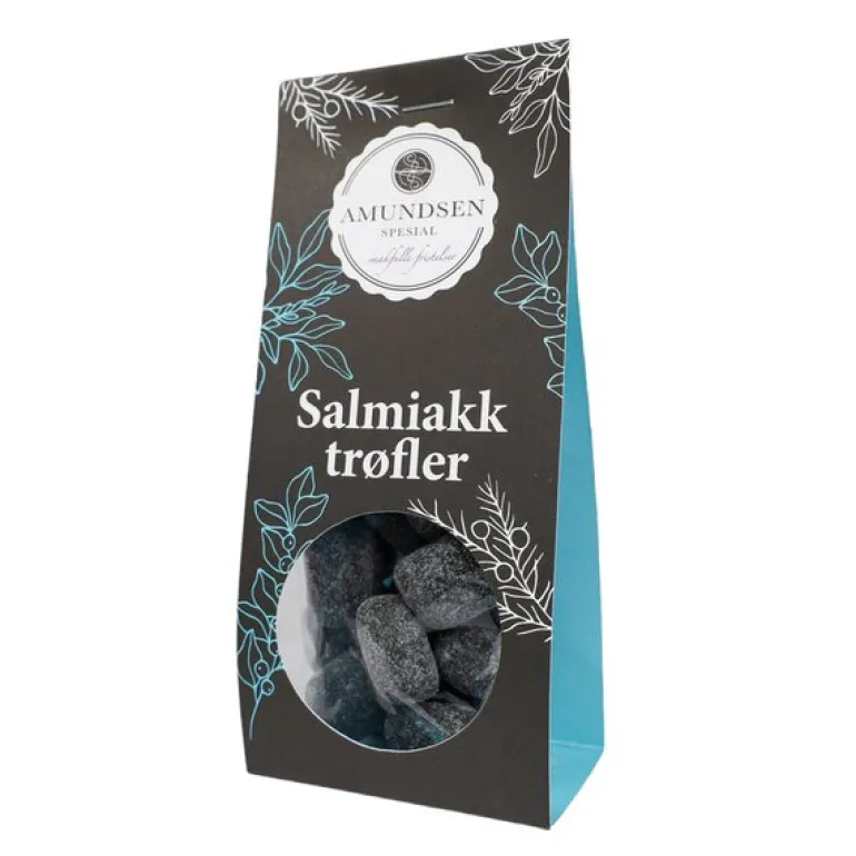 Salmiakk trøfler, 130 g, tar deg med på en smaksreise uten sidestykke, hvor den intense smaken av salmiakk møter den silkemyke teksturen av sjokolade. Disse trøflene er laget av ekte mestere innen sjokoladehåndverket, og hver bit avslører en perfekt balanse mellom den salte salmiakken og den rike, fyldige sjokoladesmaken. Den nøye utviklede oppskriften gir en harmonisk kombinasjon av smaker som både overrasker og forfører smaksløkene dine.