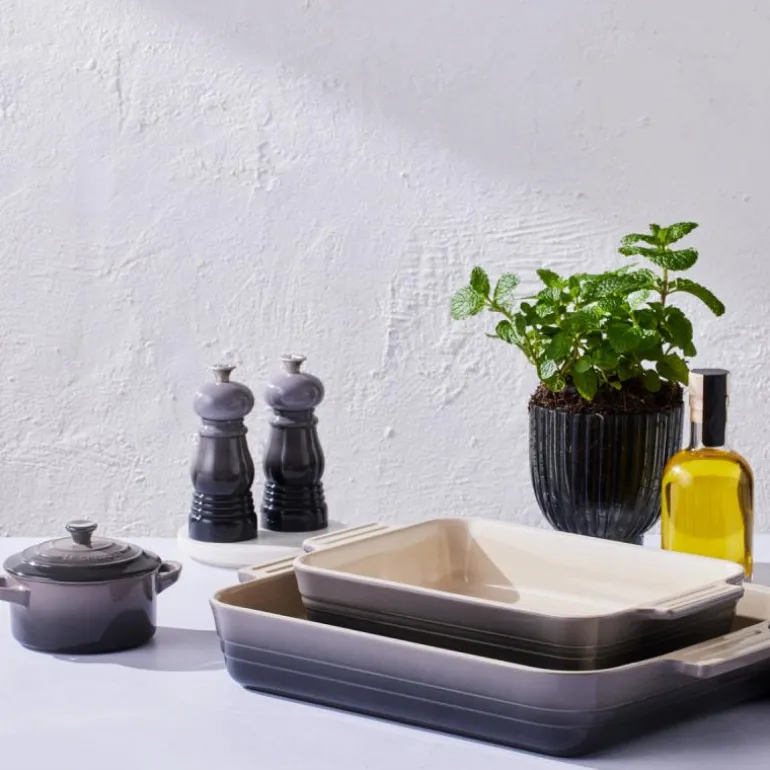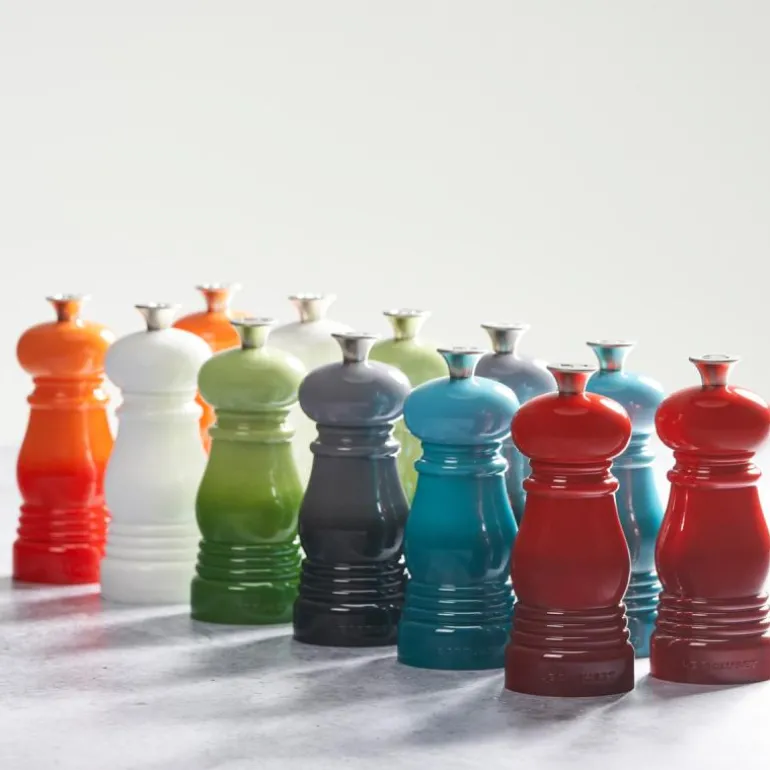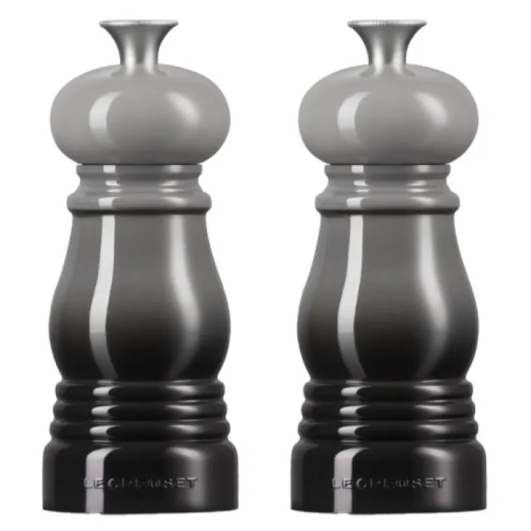 De stilige og effektive Le Creuset-kvernene på 12,5 cm i fargen flint er laget av sterk akryl med keramisk kvern, og er svært effektive til finmaling av salt og pepper og motstandsdyktige mot korrosjon. Det sterke og lette akrylmaterialet er støt- og ripebestandig og sikrer lang levetid. Knotten er fremstilt i rustfritt stål og er inspirert av håndtaket på Le Creusets ikoniske støpejernsgryter. Du kan justere kvernens grovhet ved å vri på knotten. Fargen er gradert, slik at den matcher stentøy og støpejern fra Le Creuset. Dette gjelder ikke for fargene Black og Creme. Kvernene kommer i en gaveeske.