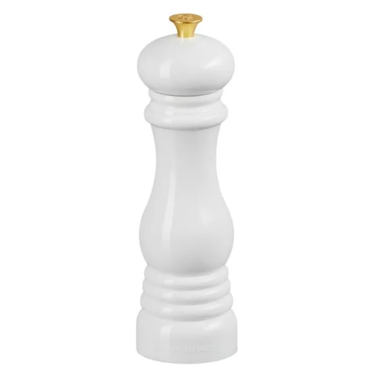 Saltkvern 21 cm white, fra Le Creuset. Denne saltkvernen fra Le Creuset byr på en kombinasjon av stil, funksjon og fantastiske farger og vil umiddelbart gi kjøkkenet ditt det lille ekstra. Den herdede keramiske møllen er robust og korrosjonsbestandig. Vil du ha grovere eller mer finmalt salt? Vri på knotten av rustfritt stål.