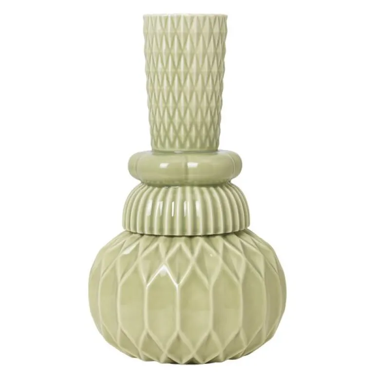 Samsurium Honkadonka vase 26,5 cm i fargen wasabi fra Dottir er et tydelig uttrykk for håndverk på sitt mest ambisiøse. Med sine mange detaljer og komplekse former er dette en vase som krever presisjon og erfaring i produksjonen.