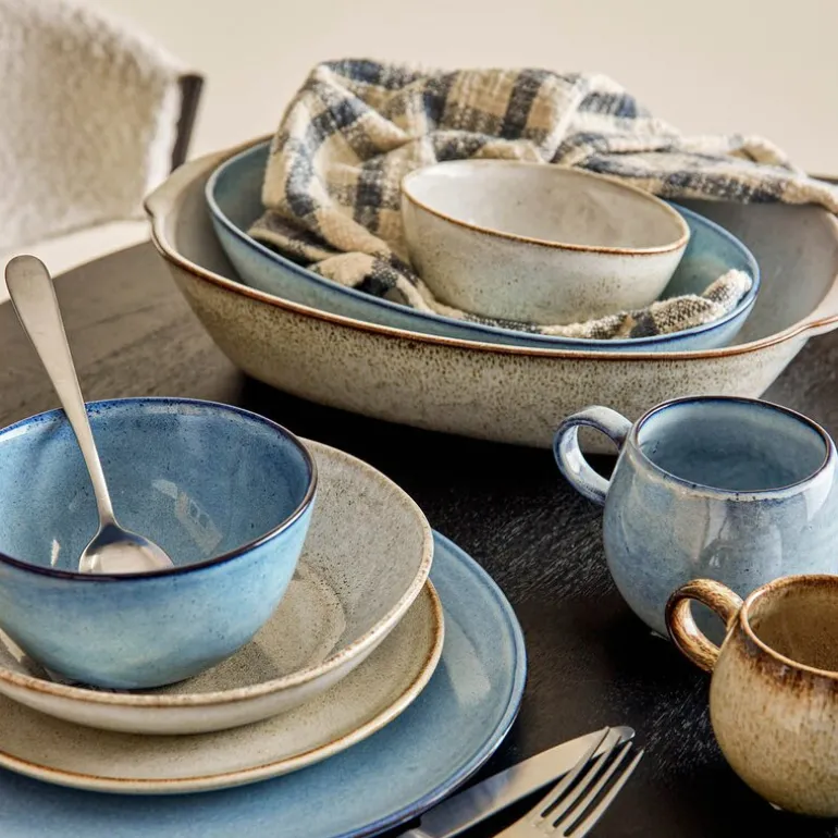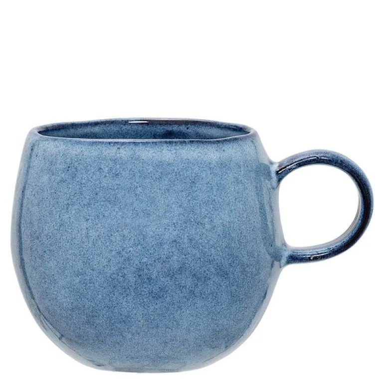 Sandrine krus fra Bloomingville i blå er et håndlaget krus i steintøy, med en kapasitet på 50 cl. Den vakre fargen og den delikate, blanke glasuren gir kruset et naturlig og harmonisk uttrykk. De ujevne kantene og den solide vekten gir det en autentisk følelse, perfekt for alt fra morgenkaffe til kveldste. Små variasjoner i farge og form gjør hvert krus unikt. Det er både funksjonelt og praktisk, da det tåler både mikrobølgeovn og oppvaskmaskin.