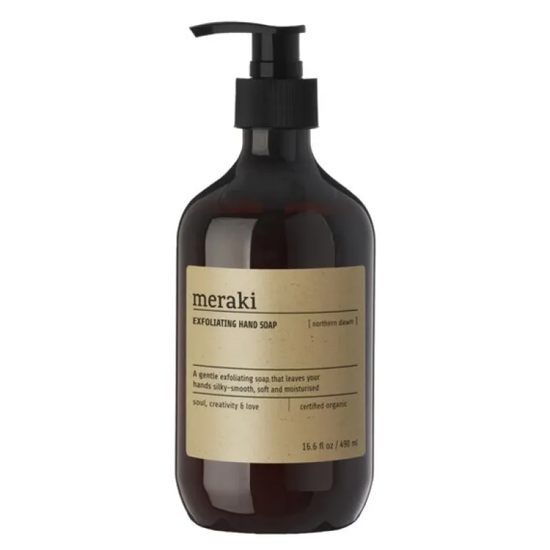 Eksfolierende håndsåpe 490 ml Northern Dawn fra Meraki er perfekt for de som ønsker mykere og glattere hender. Denne sertifiserte økologiske såpen fjerner døde hudceller ved hjelp av et fint aprikosgranulat, som gir en skånsom og effektiv peeling. Økologisk aloe vera fukter huden mens persille- og gulrotekstrakter har nærende og rensende egenskaper, og etterlater hendene rene, myke og glatte, klare for en ny dag.