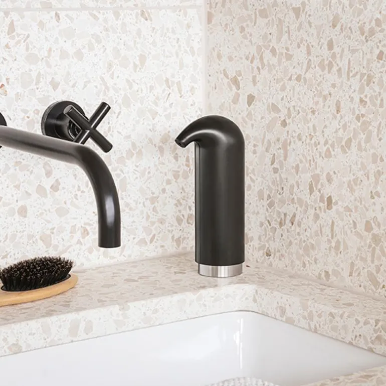 Fin og praktisk, matt svart såpedispenser fra Eva Solo. Såpedispenseren gjør det lett å sørge for en god håndhygiene, og passer fint inn på stilrene bad og kjøkken. Takket være den enkle utformingen uten synlige skrulokk og vanskelige kriker og kroker, er den lett å bruke, rengjøre og fylle med såpe ? eller desinfiserende håndgel. Den innvendige beholderen er gjennomsiktig og utstyrt med en nivåindikator som hindrer overfylling.