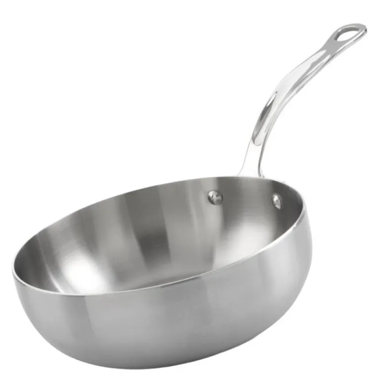 En viktig detalj er den lukkede kanten, som innkapsler aluminiumslaget og hindrer fukt fra å trenge inn. Resultatet er et redskap med storkjøkkenkvalitet og lang levetid. Den børstede overflaten gir et eksklusivt preg og gjør sauteusen enkel å holde ren. Den kan vaskes i oppvaskmaskin og er laget i Storbritannia, med fokus på solid håndverk.