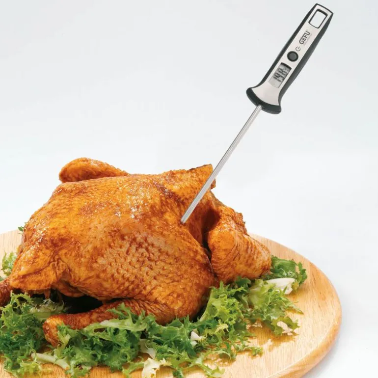 Steketermometeret tåler ikke å stå i ovnen under steking, men er laget for hurtig sjekk underveis.