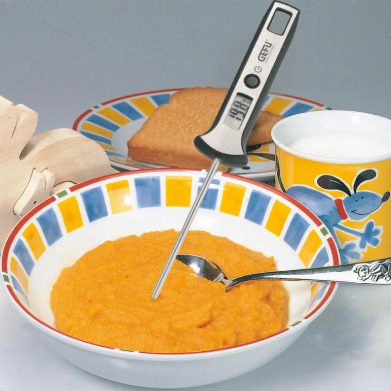 Scala digitalt termometer fra Gefu kombinerer funksjonalitet med innovativt design for presis temperaturmåling. Dette avanserte digitale termometeret har en ekstremt rask responstid, som gir nøyaktige temperaturavlesninger på bare 4-10 sekunder. Med et bredt måleområde fra -45 °C til +200 °C, kan du enkelt overvåke temperaturen på alt fra mat til vin. Det brukervennlige LCD-displayet med store, lett lesbare tall gjør det enkelt å bruke, og muligheten til å bytte mellom Celsius og Fahrenheit sikrer at du alltid får målingen i ønsket enhet.