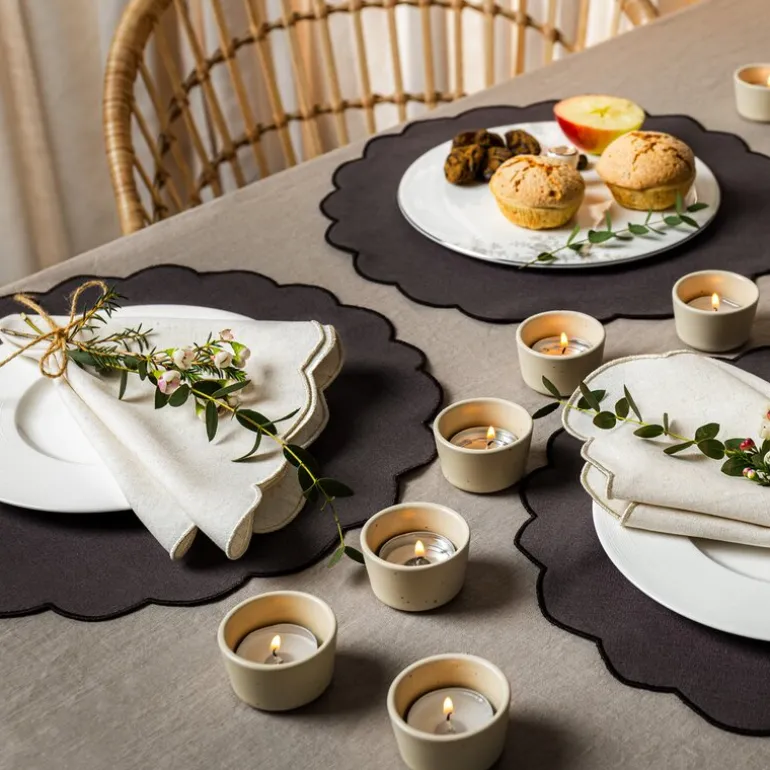 Skap en innbydende borddekking med Scallopped bordbrikker fra Ziczac. Disse elegante brikkene i en myk lin- og bomullsblanding tilfører et sofistikert uttrykk til ethvert bord. Settet består av to brikker på 36 cm i en stilren gråfarge, perfekt for både hverdag og fest. De scallopped kantene gir en dekorativ detalj som løfter bordoppsettet og tilfører en klassisk eleganse.