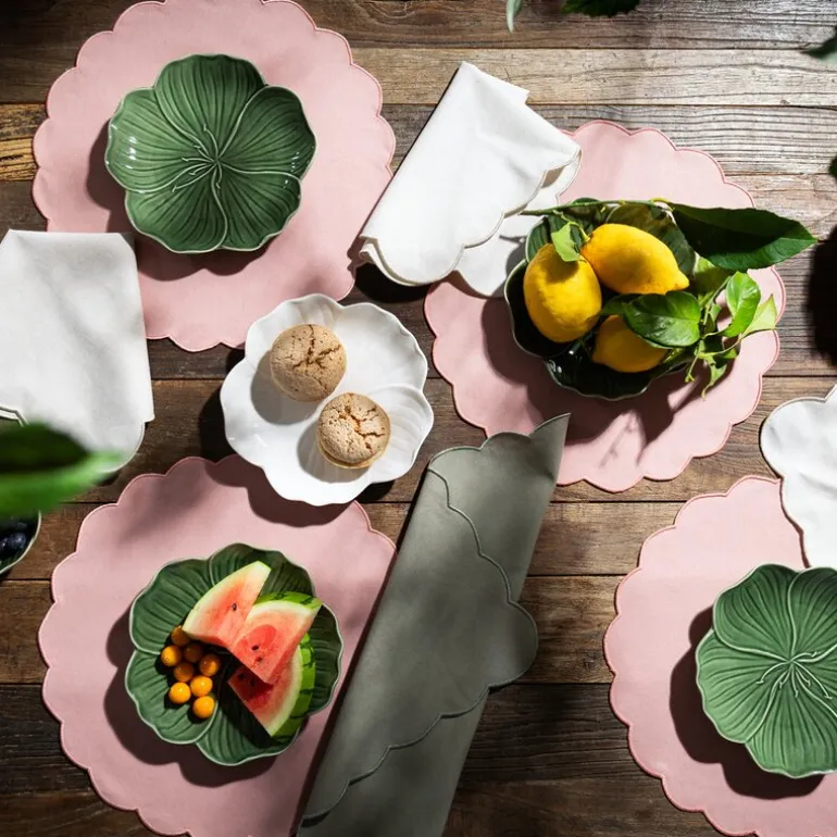Scallopped dekkebrikker fra Ziczac er en stilfull detalj som løfter ethvert dekket bord. Settet inneholder to runde dekkebrikker med en diameter på 36 cm, laget av en myk lin- og bomullsblanding som både ser flott ut og føles behagelig. Den elegante scallopped kanten gir et klassisk uttrykk, samtidig som de finnes i flere farger for å matche ulike borddekkinger.