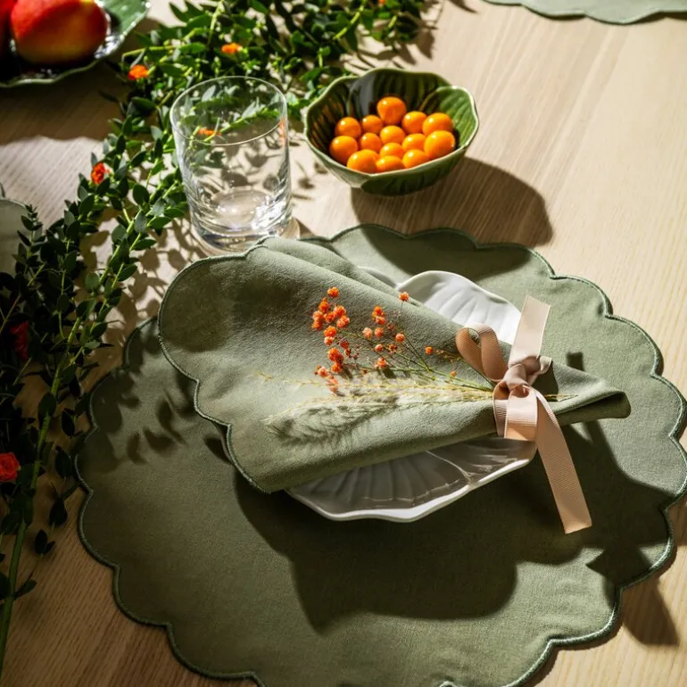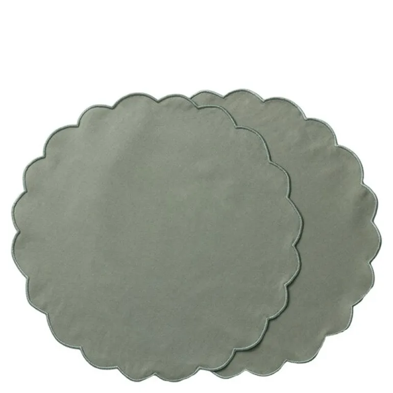 Scallopped dekkebrikker fra Ziczac er en stilfull detalj som løfter ethvert dekket bord. Settet inneholder to runde dekkebrikker med en diameter på 36 cm, laget av en myk lin- og bomullsblanding som både ser flott ut og føles behagelig. Den elegante scallopped kanten gir et klassisk uttrykk, samtidig som de finnes i flere farger for å matche ulike borddekkinger.