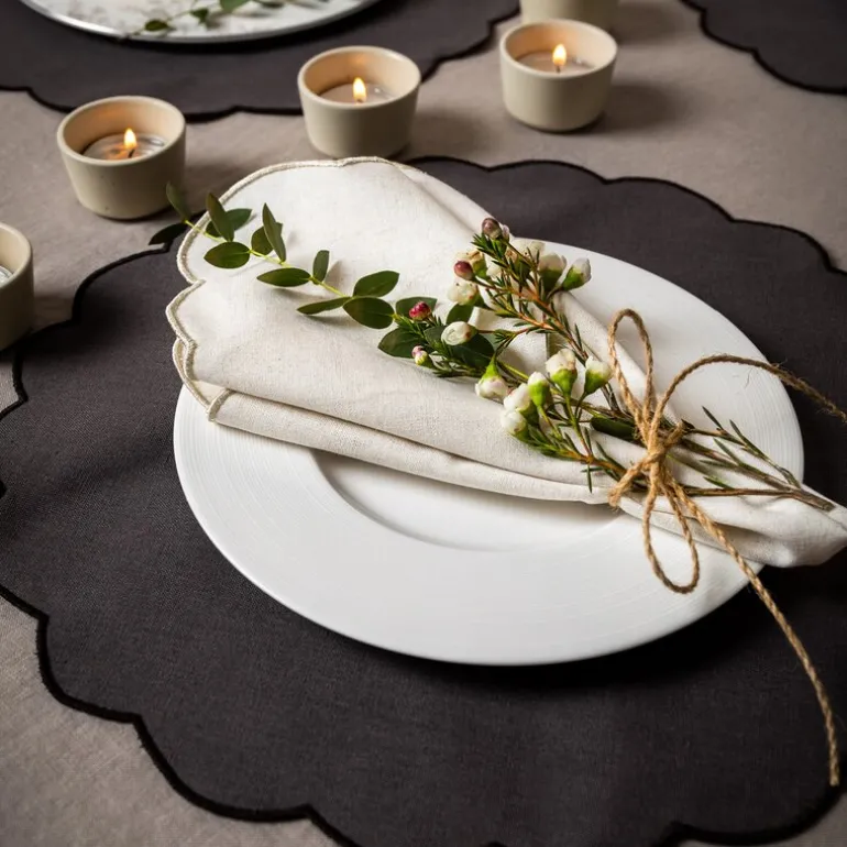 Scallopped tekstilservietter fra Ziczac er en flott detalj til ethvert dekket bord. Settet inneholder to servietter på 40×40 cm, laget av en behagelig lin- og bomullsblanding som gir en myk og luksuriøs følelse. Fargen er både moderne og allsidig, noe som gjør serviettene enkle å kombinere med ulike fargetoner og bordoppsett.