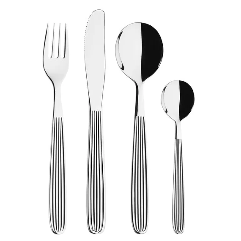Scandia bestikksett 16 deler fra Iittala. Bestikkserien Scandia, designet av Kaj Franck, er nå tilgjengelig i en mindre gaveeske med 16 deler. Pakken inneholder 4 gafler, 4 kniver, 4 middagsskjeer og 4 kaffeskjeer. Materialet i rustfritt stål fremhever det lineære designet. Den perfekte gaven til konfirmasjoner og bryllup.