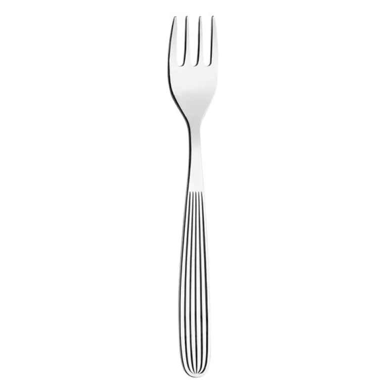 Scandia dessertgaffel 16 cm fra Iittala. Scandia-kolleksjonen har vært populær siden den ble lansert i 1952. Kaj Franck skapte et enkelt, men slående design. Den allsidige Scandia dessertgaffelen har et riflet håndtak som er lett å holde. Perfekt til desserter og servering. Den mellomstore gaffelen er også perfekt for barn. En god gaveide.