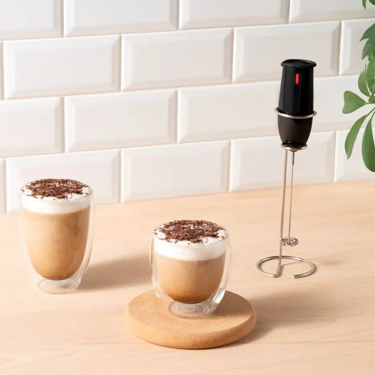 Det perfekte skummet gjør det samme for kaffen din som krem gjør for en kake: Den er ikke det samme uten. Den tiden da lekkert, fristende melkeskum kun var å få på kaféen rundt hjørnet, er definitivt over. Med melkeskummeren SCHIUMA er du din egen barista hjemme i ditt eget kjøkken. Bare dypp SCHIUMA i varm eller kald melk, trykk på knappen og la den utføre magien sin til skummet blir så tykt som du ønsker. SCHIUMA er batteridreven (batterier ikke inkludert).Viktig informasjon for veganer: Bruk enten havremelk eller barista-stil mandelmelk.Bodums visjon er ren og enkel. Bodum har som mål å bringe høykvalitets kaffe- og teløsninger og husholdningstilbehør til alle, i tråd med dine verdier. Bodum innoverer for å skape flotte design til rimelige priser basert på Bodums veiledende prinsipp om at form følger funksjonalitet, samtidig som Bodum holder øye med bærekraft, miljøansvar og respekt for velferden til sine ansatte, Bodums lokalsamfunn og planeten vår.God design trenger ikke være dyrt, Peter Bodum.