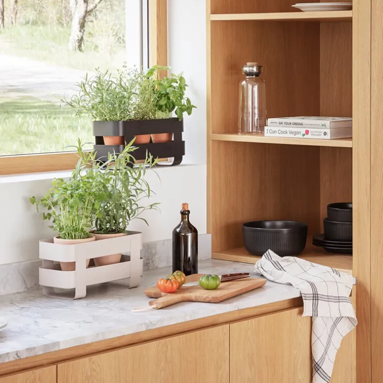 Det stilige ståldesignet komplementerer enhver vinduskarm eller kjøkkenhylle i det moderne hjemmet, og står i pen kontrast til grønne planter.