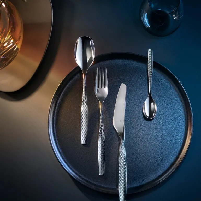 Gjør ethvert måltid iøynefallende. WMF Sentic bestikksett i 30 deler har et forførende uttrykk og vekker gode følelser. Bestikket har et moderne, men samtidig ekstravagant design, og det eksklusive, unike overflatebelegget Cromargan protect® sikrer enestående motstandsdyktighet mot riper og brukstegn og gjør det lett å vedlikeholde. Dette ergonomiske bestikksettet er rent kvalitetshåndverk. Det ligger perfekt i hånda og er fremstilt med den store ekspertisen som WMF er kjent for. Knivene er smidd av ett enkelt stykke rustfritt bladstål og deretter herdet som en helhet. De har også en spesialdesignet tagget kant som sikrer varig skarphet og et perfekt kutt. Settet tåler oppvaskmaskin, så rengjøringen går raskt og enkelt, og det leveres i en vakker bestikkeske for sikker og praktisk oppbevaring. Sentic er en del av designserien “Design Attitude”, som kjennetegnes ved en unik, ekstravagant og individuell stil kombinert med livlige farger og dristige former. Dette bestikket gjør ethvert bord til et blikkfang.