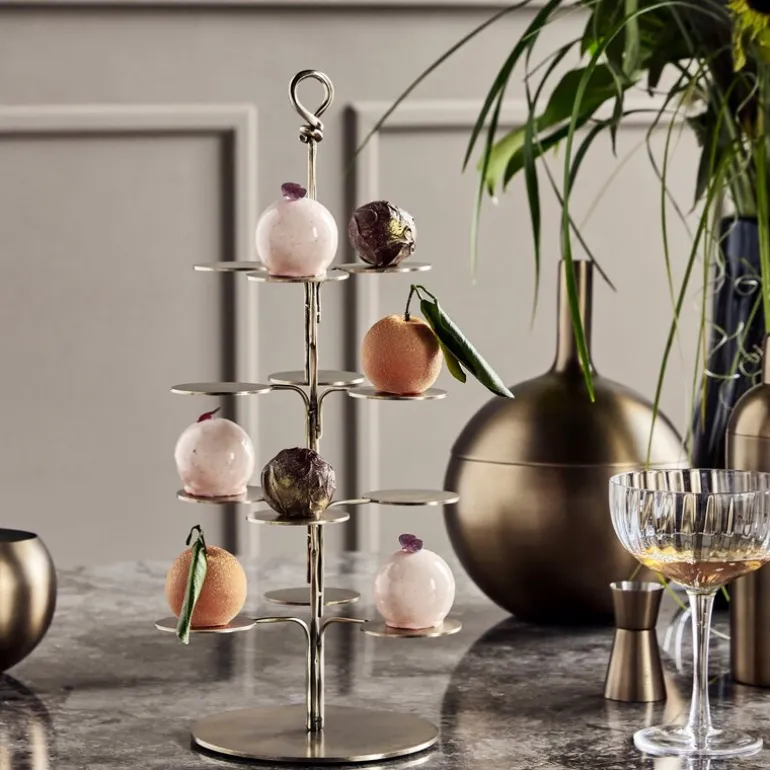 Seny dekorasjonsfat fra House Doctor tilfører et elegant og sofistikert element til borddekkingen din. Med sin antikke messingfinish og børstede overflate gir fatet et klassisk uttrykk som passer perfekt til servering av småretter som petit fours, cupcakes eller snacks.