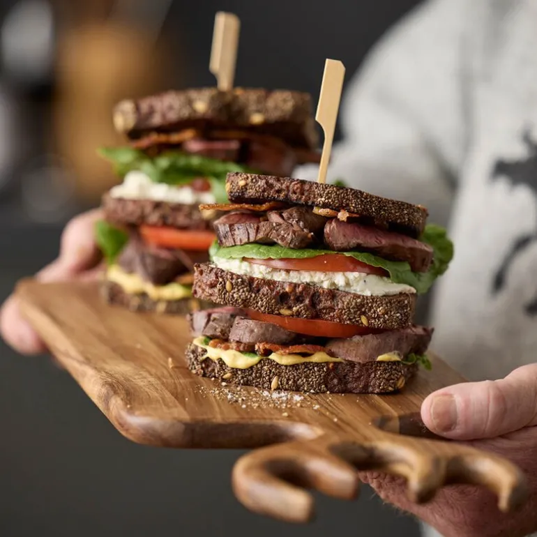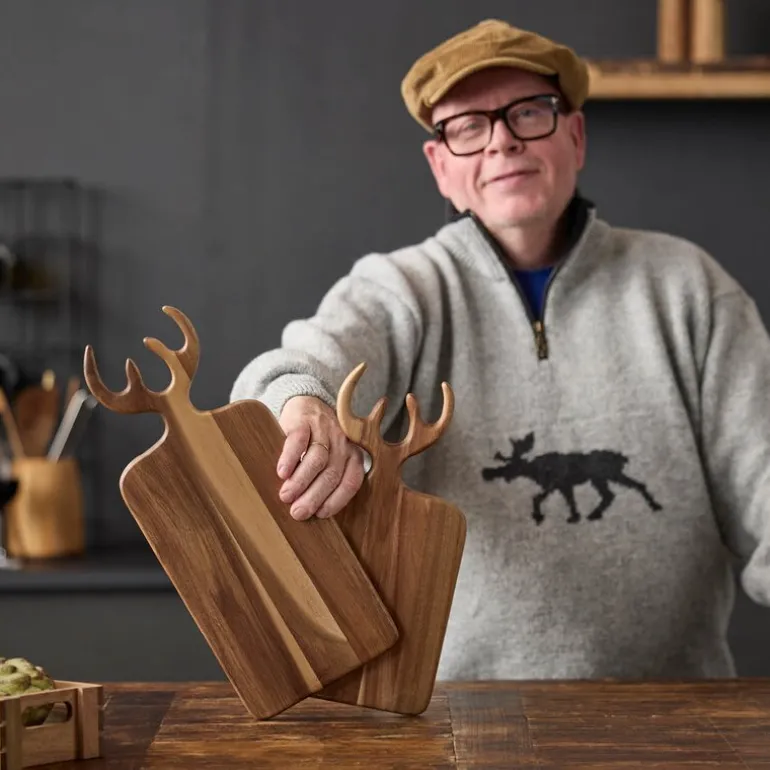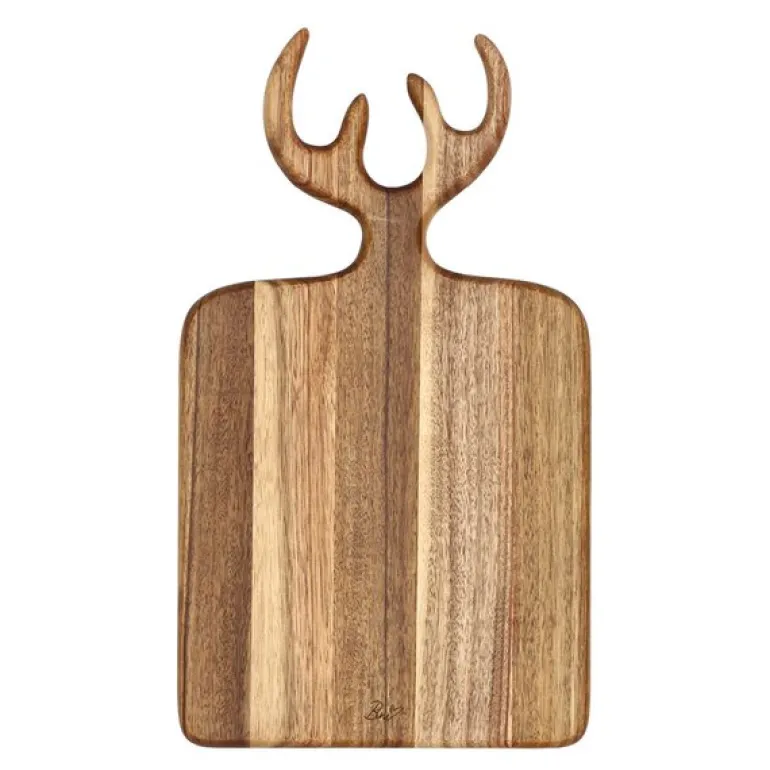 Holm serveringsbrett i akasietre er både funksjonelt og estetisk, med sine mål på 36 x 21 x 1,5 cm. Det unike designet inkluderer et håndtak formet som et gevir, som tilfører brettet et rustikt og elegant preg. Brettet er ideelt for servering av ost, tapasretter, forretter eller som et praktisk skjærebrett under matlaging.