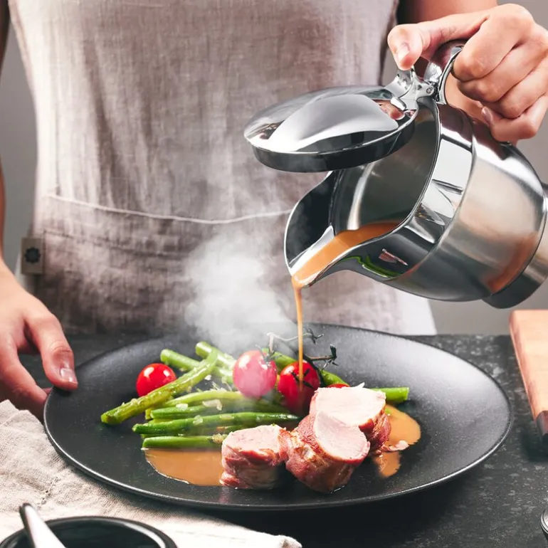Gefu er kjent for sitt gjennomtenkte design og høye kvalitet, utviklet i samarbeid med det anerkjente designstudioet invivo design i Berlin. Serviro sauskanne kombinerer stil og funksjonalitet på en måte som gjør den til et uunnværlig tilbehør ved både hverdagsmiddager og mer formelle anledninger, og sørger for at serveringen alltid skjer med presisjon og eleganse.