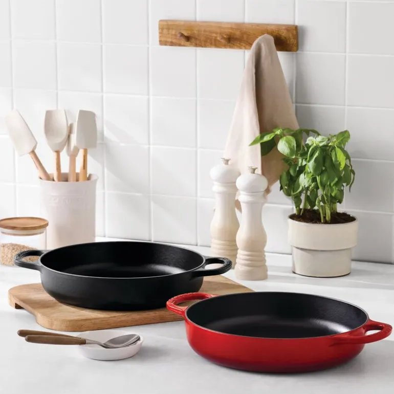 Le Creuset-støpejernspannen er et allsidig kjøkkenredskap. Dens design gjør den ideell for en rekke retter, inkludert steking, gryter, sauser og mye mer. Med en perfekt diameter på 28 cm balanserer den mellom å være kompakt nok for daglig bruk og romslig nok til å romme sjenerøse porsjoner. Enten du lager en rask frokost eller forbereder en gourmetmiddag, vil denne pannen løfte din kulinariske opplevelse.