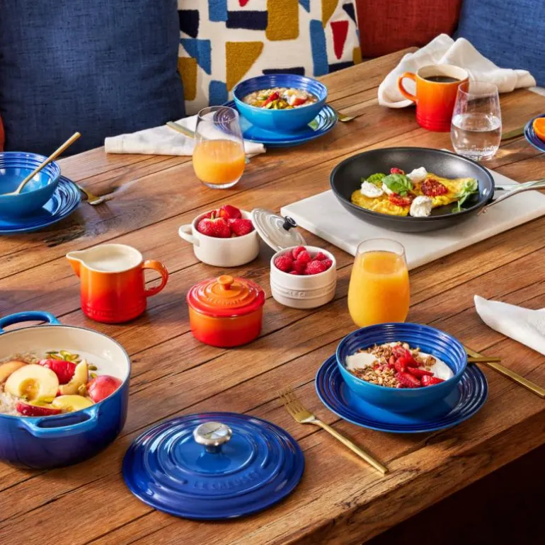 Unn deg dette nydelige sidefatet, eller overrask en matelsker. Omhyggelig fremstilt, med en senket base som holder alle de deilige væskene på tallerkenen. Stilig og praktisk, med en distinkt Le Creuset-kant ? de tre ikoniske ringene fanger oppmerksomheten umiddelbart.