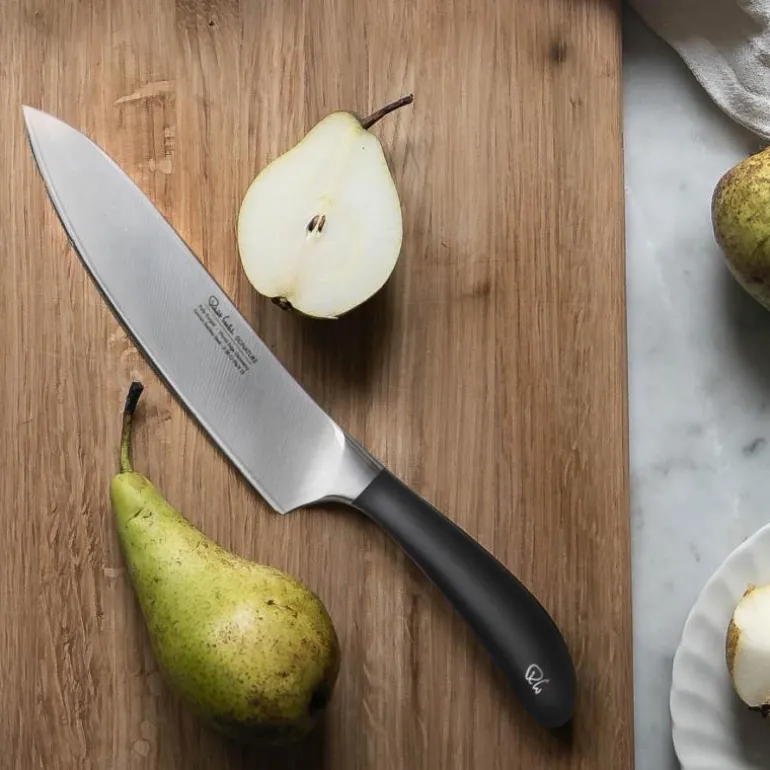 Signaturkokkekniv 16cm er en allroundkniv med buet blad som muliggjør en gyngende hakk og terninger. Laget av tysk rustfritt stål med et ergonomisk DuPont-håndtak.Alle Robert Welch Signature-kniver leveres i stilig gaveeske, kan maskinvaskes og har 25 års garanti.