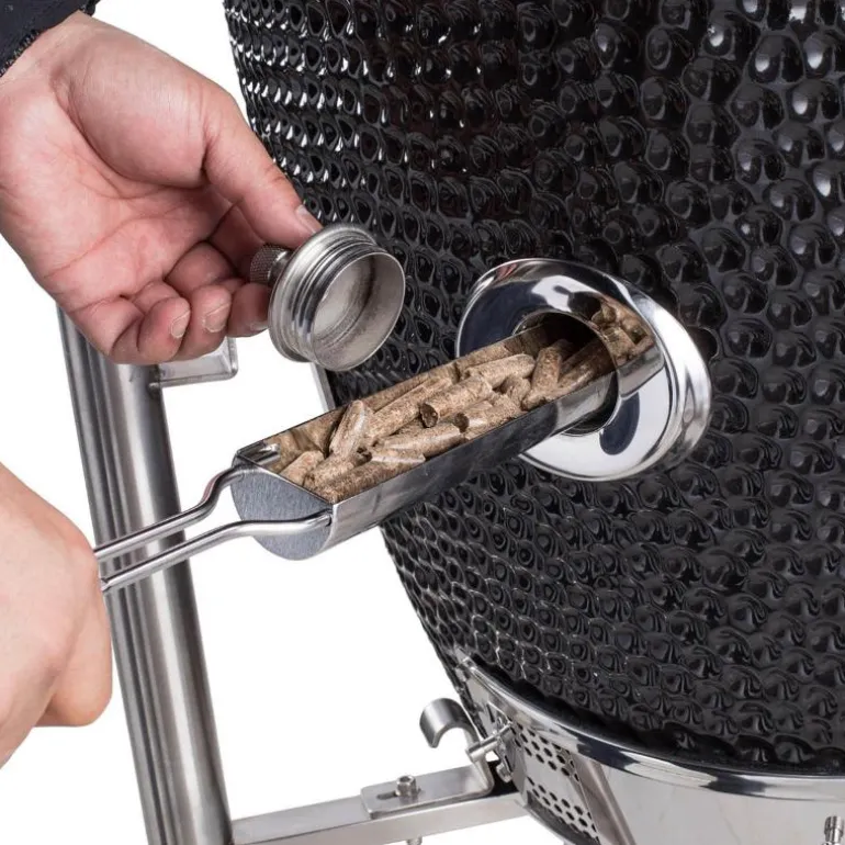 Med sitt elegante uttrykk, klassiske design og detaljer i rustfritt stål er Signature Pro en Kamado Sumo i en klasse for seg. Oppdag det komplette utekjøkkenet fullt utstyrt med alle funksjonene du trenger for å kunne tilby storslåtte grillmiddager. Signature Pro er neste generasjon kamado-griller bygget for den fullverdige grillmesteren som ikke er fornøyd med noe annet enn den høyeste kvalitetsfølelsen. Den sjenerøse grilloverflaten i kombinasjon med den fleksible grillristen og tilhørende kjøleribber gjør Signature Pro til den perfekte kokestasjonen hvor du kan grille, røyke, bake og brune for 10 personer eller flere.