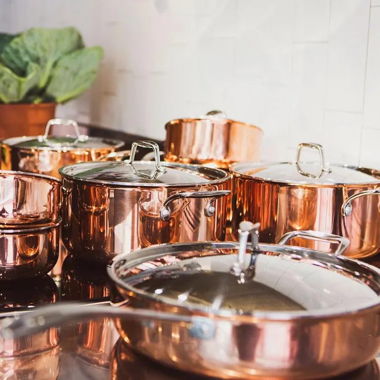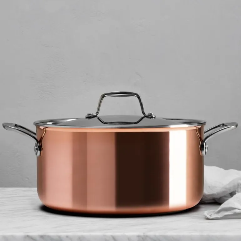 Signerat gryte 5,3L kobber fra Anders Petter. Denne store kobbergryten fra Signert-serien er konstruert med tre lag, som gir en total tykkelse på 2,6 mm. Det indre laget er av rustfritt stål, mellomlaget av aluminium, og det ytre laget av kobber. Denne sammensetningen sikrer rask og jevn varmefordeling, noe som gjør den ideell for presis matlaging. Bunnen er forsterket med en tykkere plate av rustfritt stål, noe som gjør gryten kompatibel med alle typer komfyrer, inkludert induksjon. Gryten har også to håndtak i rustfritt stål som holder seg kjølig under bruk.