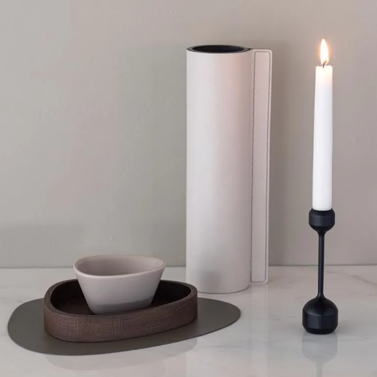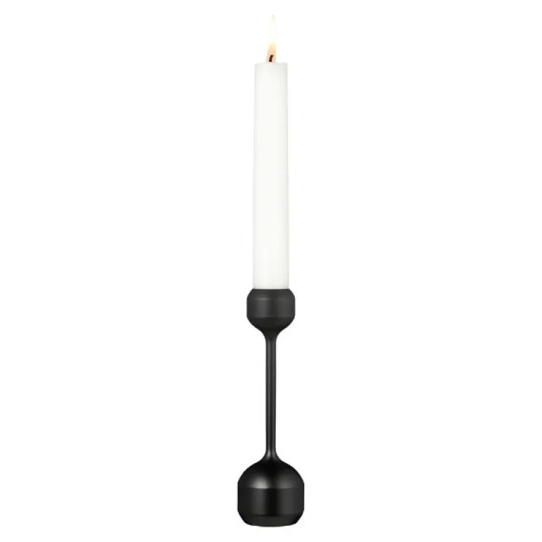 - Silhouette 145 svartstål. Nøye formet med forenklede kurver og gjentatte proporsjoner er den tidløse Silhouette 145 lysestaken i svartbelagt solid stål en organisk passform for enhver plass. Plasser den individuelt eller i en samling med flere og opplev hvordan utseendet til interiørstylingen din endres på et blunk. Silhouette 145 lysestaken passer til tradisjonelle stearinlys så vel som LED-lys.