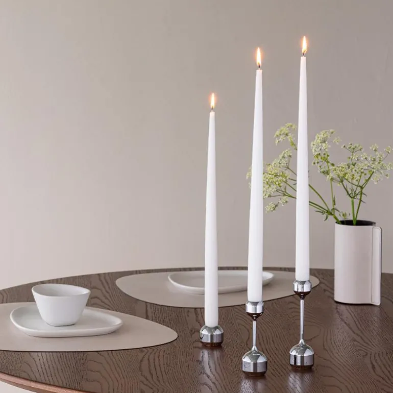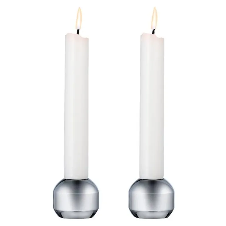 - Silhouette 34 sett kromstål. Med sin enkle og organiske form er det tidløse Silhouette sett 34 i krombelagt solid stål et klassisk designelement for enhver plass. Plasser den individuelt eller i en samling med flere deler og opplev hvordan utseendet til interiørstylingen din endres på et blunk. Silhouette 34 sett med to lysestaker passer til tradisjonelle stearinlys så vel som LED-lys.