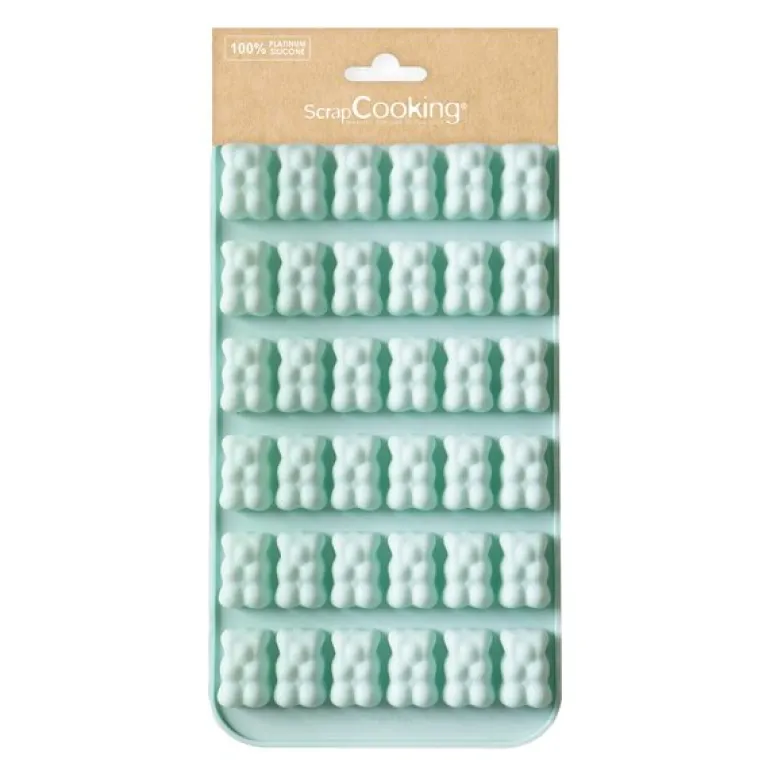 Skap små smaksbomber med denne mintgrønne silikonformen fra ScrapCooking! Med hele 36 bamseformede hulrom kan du lage alt fra vingummi og sjokolade til isbiter og små snacks – bare fantasien setter grenser.
