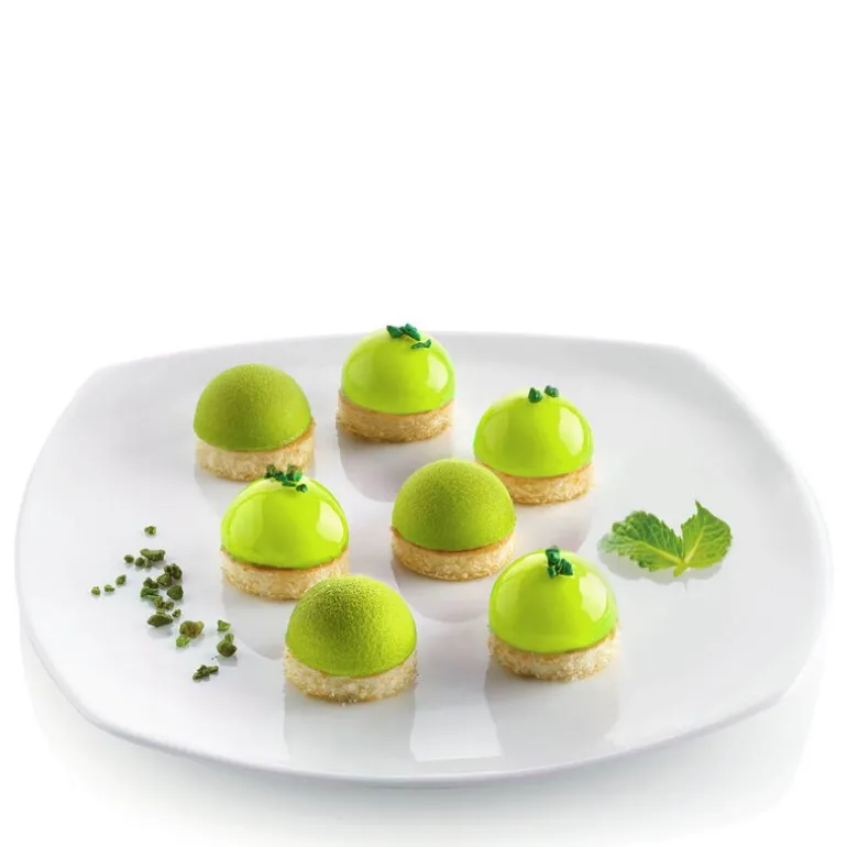 Slipp løs kreativiteten med Silikomarts halvkuleform i platinasilikon – perfekt for elegante desserter, sjokoladekupler og iskuler.