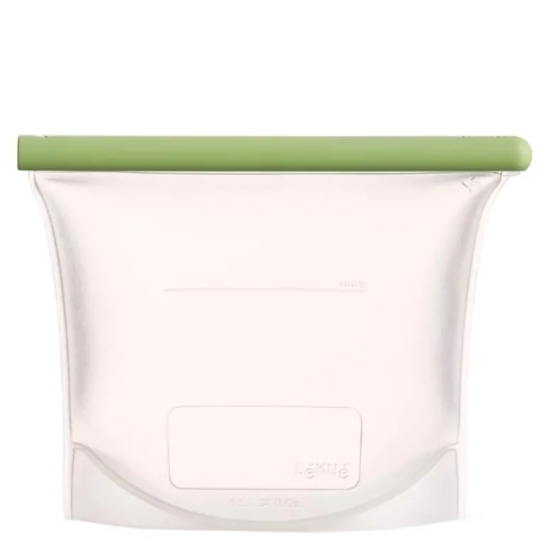 Lékués silikonposer er fremstilt av 100% Platinum Food Grade Silikon. De er 100% lufttette og kan både oppbevares stående og liggende. De tåler frost og kan også has i mikroovnen til oppvarmning og tining. Det er et lite skrivefelt på alle posene, og de tåler oppvaskmaskin så de er lette å holde rene.