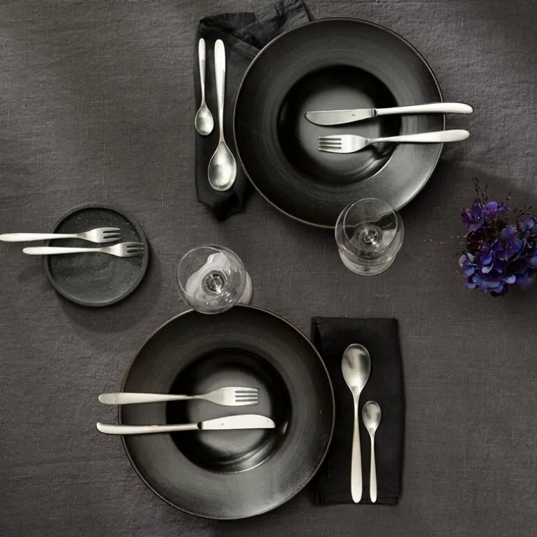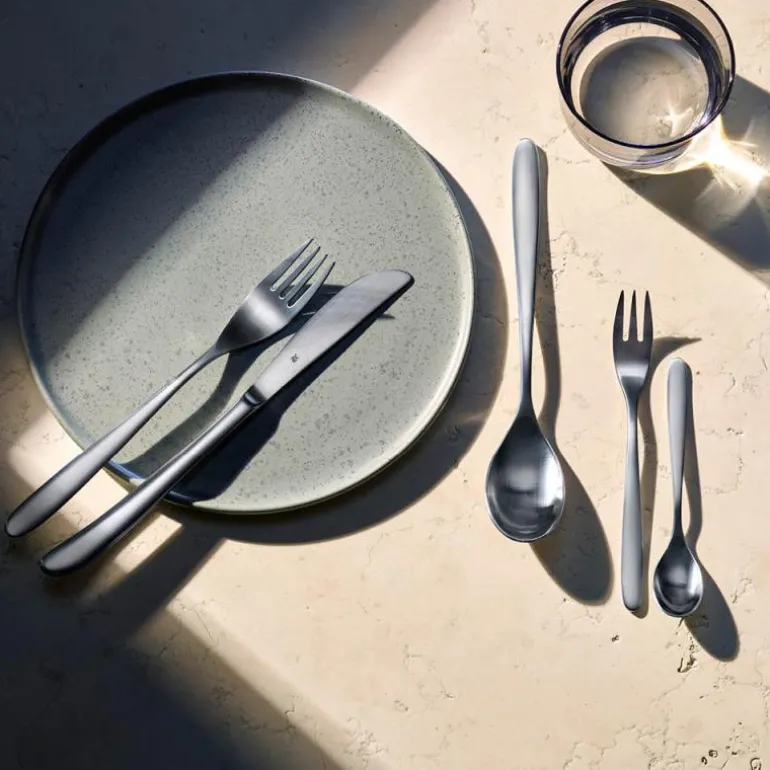 Dekk til gjester med dette 60 delers Silk-bestikket fra WMF, som imponerer med sine myke og elegante former og et lett, smidig og ergonomisk design. Med elegante detaljer som f.eks. den myke, flytende overgangen som minner om silke, og knivens unike buede skaft som tilfører et markant særpreg. Fremstilt i Cromargan® rustfritt stål 18/10 i høy kvalitet som holder år etter år. Og den utrolig flotte silkematte finishen slår bare aldri feil. Bestikkets ergonomiske design er basert på mange års erfaring og ekspertise, noe som WMF er berømt for, og ligger derfor perfekt i hånden. Knivene er smidd av ett enkelt stykke spesialbladstål og herdet som en helhet. Den spesialdesignede taggete eggen er med på å sikre en optimal og langtidsholdbar skarphet. Tåler oppvaskmaskin for rask og enkel rengjøring. Settet leveres i en flott eske for en sikker og praktisk oppbevaring. Silk er en del av designserien “Design Attitude”, som kjennetegnes ved en unik, ekstravagant og individuell stil kombinert med livlige farger og dristige former. Dette bestikket gjør ethvert bord til et blikkfang.