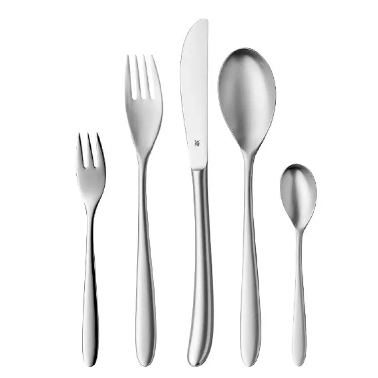 Navnet på denne modellen ble ikke tilfeldig valgt: Silk, designet av Peter Bäurle, føles glatt og behagelig, med en silkematt overflate og en myk, delikat form som ligger godt i hånda. Den slanke formen, de myke overgangene og den kurvede enden av håndtaket på knivene støpt i ett stykke, er karakteristisk for Silk. Takket være de mange supplerende delene og serveringsbestikkdelene er WMF Silk-bestikket perfekt til festlige borddekkinger for mange gjester. USP1 Cromargan rustfritt stål 18/10 – lett å rengjøre, smaksnøytralt og syreresistent. USP2 Alle delene er i toppkvalitet og er omhyggelig fremstilt, og de kan lett rengjøres i oppvaskmaskinen. USP3 0 USP4 0 USP5 0
