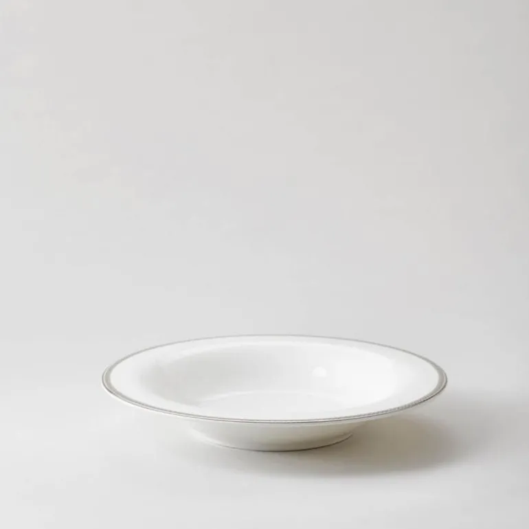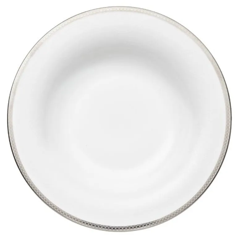 Dyp tallerken i serviset Silver Paisley fra Royal Porcelain. Klassisk og tidløs, elegant og romantisk. Silver Paisley-serien fra Royal Porcelain kombinerer maskuline, stramme linjer med et delikat, romantisk mønster. Et design som gjør Silver Paisley like anvendelig som det er vakkert. Silver Paisley er festserviset du aldri blir lei av å ta frem, og er en serie du kan samle på hele livet. Hvorfor ikke sette dette serviset på ønskelisten til bryllupet?Serien er produsert av Royal Porcelain, en av Norges største merkevarer innen serviser. Silver Paisley er laget av benporselen, som er den aller fineste type porselen. Serien tåler oppvaskmaskin, men som med alle serviser med sølv eller gullkant bør serviset ikke vaskes med temperatur over 50 grader og det bør brukes halv dose med vaskemiddel. Fås kun hos Tilbords. Silver Paisley er et komplett festservise som inneholder alt du trenger til de ekstra spesielle anledningene. Det rene, tidløse designet gjør at serviset er like aktuell til alle årstider og kan kombineres med bordpynt i dine favorittfarger. Serien inneholder tallerkener i ulike størrelser – til forrett, hovedrett og dessert – serveringsfat i flere størrelser, suppeterrin, sausenebb og salatbolle. I tillegg finner du selvsagt et komplett kaffeservise.