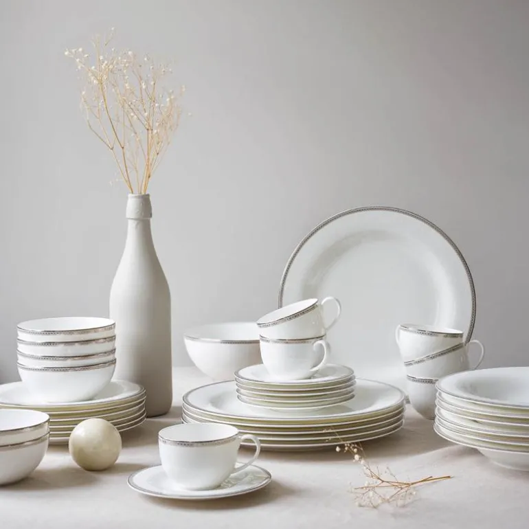 Silver Paisley er et komplett festservise som inneholder alt du trenger til de ekstra spesielle anledningene. Det rene, tidløse designet gjør at serviset er like aktuell til alle årstider og kan kombineres med bordpynt i dine favorittfarger. Serien inneholder tallerkener i ulike størrelser– til forrett, hovedrett og dessert, –serveringsfat i flere størrelser, suppeterrin, sausenebb og salatbolle. I tillegg finner du selvsagt et komplett kaffeservise.