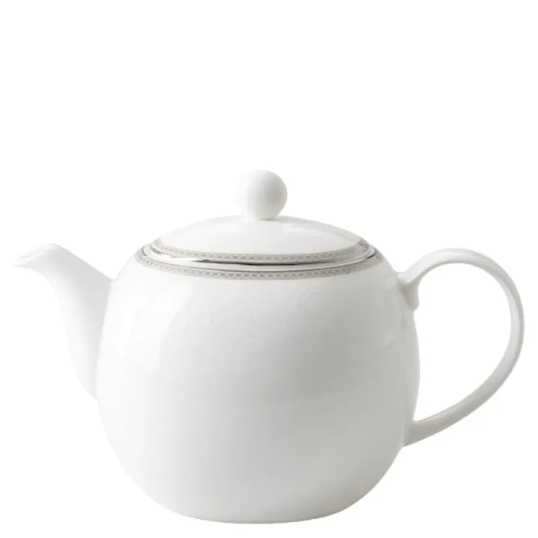 Tekanne 1,3 liter i serviset Silver Paisley fra Royal Porcelain. Klassisk og tidløs, elegant og romantisk. Silver Paisley-serien fra Royal Porcelain kombinerer maskuline, stramme linjer med et delikat, romantisk mønster. Et design som gjør Silver Paisley like anvendelig som det er vakkert. Silver Paisley er festserviset du aldri blir lei av å ta frem, og er en serie du kan samle på hele livet. Hvorfor ikke sette dette serviset på ønskelisten til bryllupet?