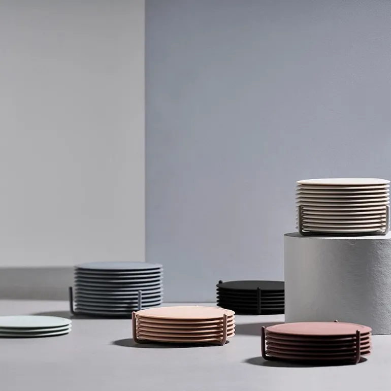 Flotte fargede glassbrikker av silikon. En myk og lydløs blanding. Slik kan man best beskrive det når man setter fra seg et glass på glassbrikken av silikon. Leveres i sett med seks glassbrikker i praktisk metallholder. Enkle å rengjøre. D: 10 cm. Designertrioen VE2 står bak den stilsikre designen og det nærmest svevende uttrykket og hvis en duggdråpe renner nedover glasset, havner den innenfor glassbrikkens diskrete kant. Velg mellom en rekke flotte farger, som matcher Peili-serien.