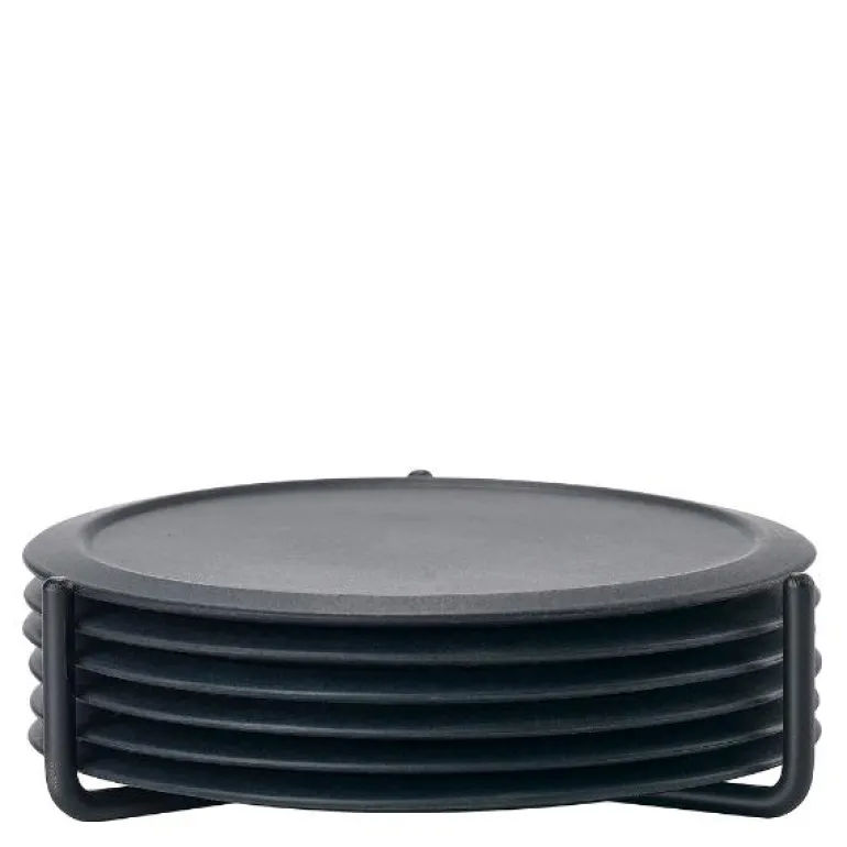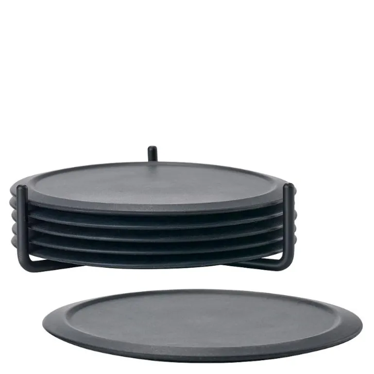 Flotte fargede glassbrikker av silikon. En myk og lydløs blanding. Slik kan man best beskrive det når man setter fra seg et glass på glassbrikken av silikon. Leveres i sett med seks glassbrikker i praktisk metallholder. Enkle å rengjøre. D: 10 cm. Designertrioen VE2 står bak den stilsikre designen og det nærmest svevende uttrykket og hvis en duggdråpe renner nedover glasset, havner den innenfor glassbrikkens diskrete kant. Velg mellom en rekke flotte farger, som matcher Peili-serien.