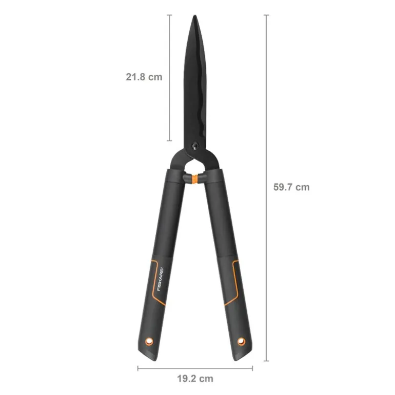 Singlestep hekksaks HS22 58 cm svart fra Fiskars. Blader av herdet stål med bølgeprofil. Komfortable og robuste håndtak i glassfiberforsterket polypropylen.