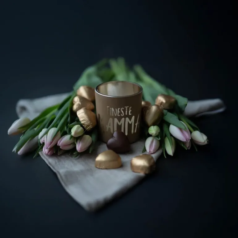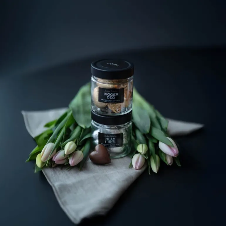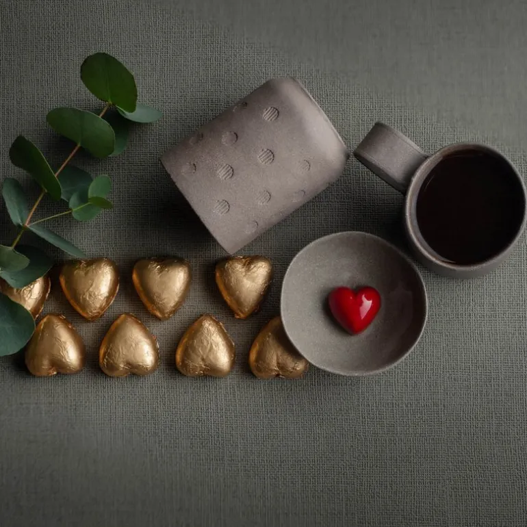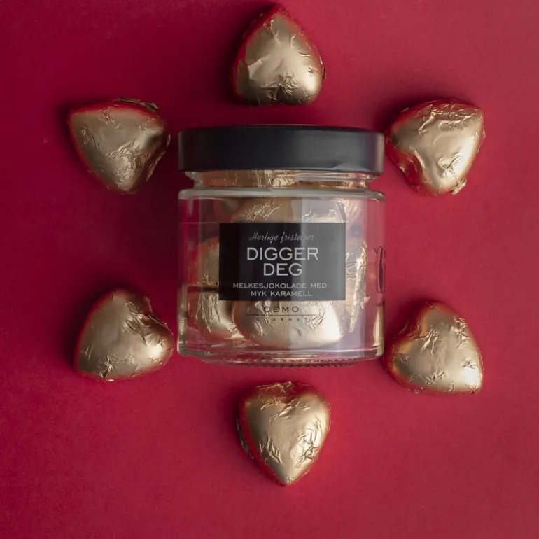 Gull sjokoladehjerter med melkesjokolade og myk karamell.