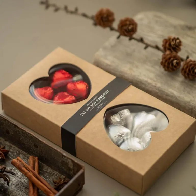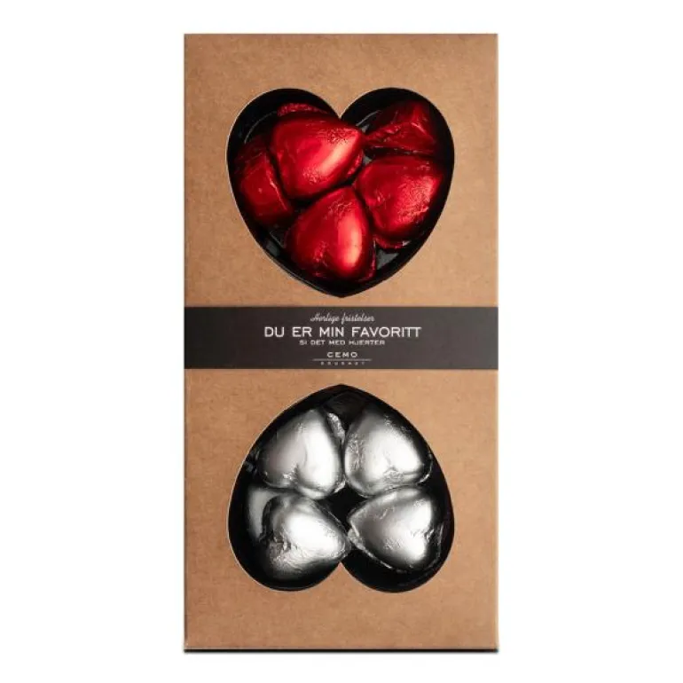 Et blikk sier ofte mer enn ord, det samme kan sies om hjertesjokolade <3 Disse hjertene er laget av nydelig belgisk sjokolade og fylt med myk karamell og mørk sjokoladeganache.