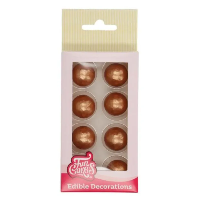 Legg til litt bronsegull til kaker og andre bakverk med disse sjokoladekulene i bronse fra FunCakes! Sjokokulene i bronse har et vakkert utseende og vil gjøre det superenkelt å dekorere kaker, desserter og cupcakes.