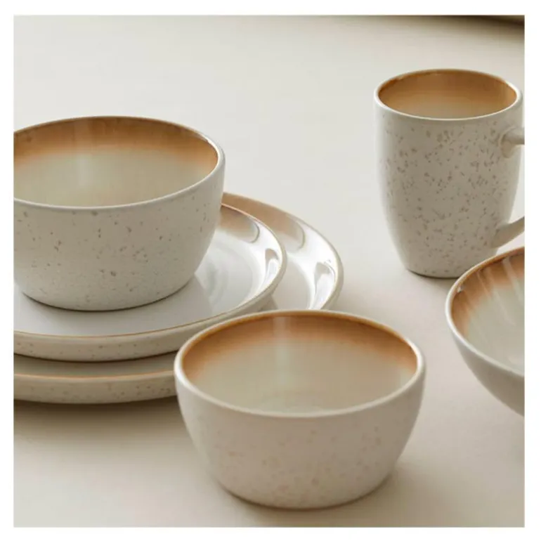 BITZ skål i steintøy med matt kremfarget ytterside og blank kremfarget glasur på innsiden. Skålen er 12 cm i diameter og 6 cm høy, en størrelse som er perfekt til mange ting, fra frokost, snacks og sauser til småkaker, sjokolader, bær og fruktbiter. Skålen er produsert i robust steintøy, og den flotte, reaktive glasuren fremhever steintøyets glød. Kombinasjonen av den utvendige, matte glasuren og den blanke, fargede innsiden gjør hver skål unik, og du finner ikke to like skåler.
