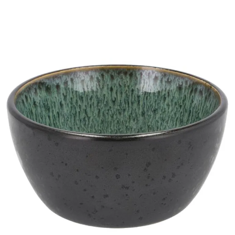 Bitz Skål 12 cm i svart og grønn setter en ny standard for hvordan vi ser på servise. Produsert i robust steintøy med en reaktiv glasur, gir denne skålen en ekstra glød som fanger øyet. Den elegante, blanke grønne innsiden og den matte svarte utsiden gir en sofistikert kontrast som gjør hver bruk unik.