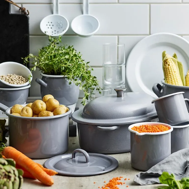 Kockums emaljerte skåler og tallerkener er laget med doble lag av høykvalitets emalje som motstår smuss og flekker, og er enkle å rengjøre. De kan brukes på alle typer komfyrer, inkludert induksjon og gass, og kan også settes direkte i ovnen (ikke i mikrobølgeovn). Produktene produseres med naturlige råvarer og stor omtanke for miljøet, noe som gjør hver skål unik. Emaljeringen, som utføres for hånd, kan gi små variasjoner i farge og tekstur, noe som tilfører hvert produkt sitt eget særpreg.