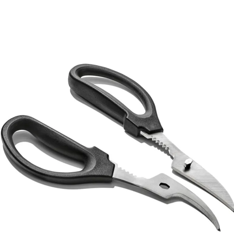 Skalldyrsaksen fra OXO gjør det enkelt å åpne skalldyr og fisk. Den har et buet hode som er spesialdesignet til hummerhaler, krabbeklør og reker, og den innbyde knekkeren melleom håndtakene gjør det enkelt å åpne skallet. Håndtaket har et non-slip grep, så de ligger godt i hånden, hvis du har våte hender. Husk at saksen er veldig skarp og skal håndteres forsiktig. Bør oppbevares utilgjengelig for barn. Tåler oppvaskmaskin.