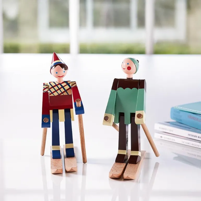 Kay Bojesen er kjent for at han fant inspirasjon til sine populære figurer fra dyreriket, men han skapte også flere tobente og firehjulte figurer. Blant disse finner vi skiløperne Datti og Boje, med sine spreke, blide ansikter og røde kinn. Kay Bojesen designet skiløperne på slutten av 1940-tallet, hvor han brukte sin sønn og svigerdatter som inspirasjonskilde. I 2016 gjør det fargerike paret comeback i skisporet når Kay Bojesen Denmark setter paret i produksjon. Kay Bojesens skiløpere Datti og Boje er laget i malt bøk, og figurenes antrekk oser av nordiske skitradisjoner, med de fine toppluene og Dattis gensers kledelige mønstereffekt. Dette er en flott interiørgave, og gjør seg godt i de skandinaviske, moderne hjem, eller på hedersplassen i hytten på fjellheimen.