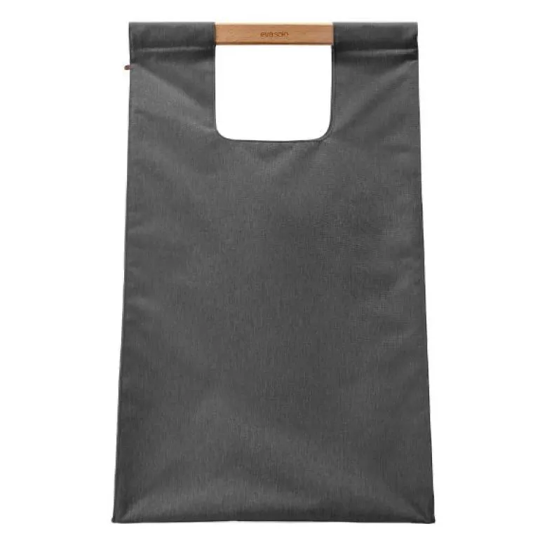 Dekorativ skittentøyspose i mørk grå nylon, fra Eva Solo. Skjul skittentøyet på et blunk med en funksjonell skittentøykurv, oppbevaring og transportveske i ett. Den dekorative skittentøyposen i delikat grå farge har et praktisk bærehåndtak i bøk som gjør posen enkel å ta med til for eksempel vaskekjelleren. Den lukkes med magnet, og står stabilt uten å falle sammen.