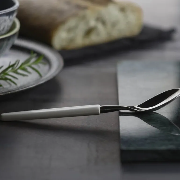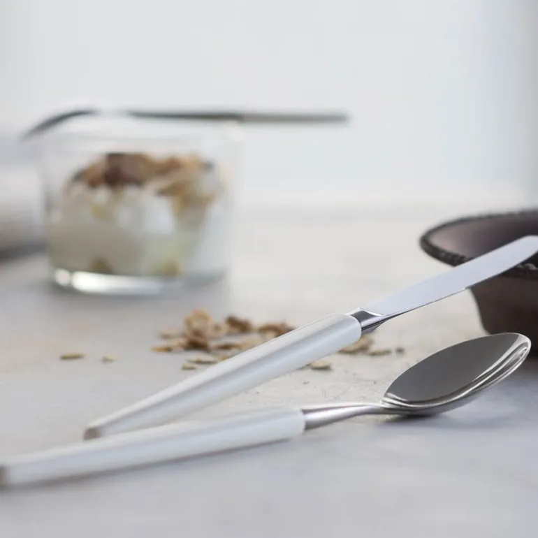 Skje 21 cm hvit. Skaugum bestikk med hvitt skaft er en klassiker! Skaugum Bestikks kronelogo er deres garanti for at du holder et håndlaget, norsk kvalitetsbestikk. Bordknivene er smidde, som gir en skarphet og kvalitet som ingen andre produksjonsmetoder klarer. I tillegg til kniv, skje og gaffel har vi et bredt utvalg av andre deler, som for eksempel kakespade, salatbestikk og ostehøvel. Bestikket er produsert i rustfritt stål med 18/8-kvalitet. Skaugum Bestikk i hvitt og sort kan vaskes i maskin. Vi anbefaler at du alltid skyller bestikket før du setter det i maskinen, bruk gjerne finvaskprogram. Skaugum sine bestikk har sett like ut helt siden starten i 1943. Skaugum lager sine bestikk for hånd, som er en spennende og tidkrevende prosess. Stålet varmes opp til 1035 grader før vi slår med en hydraulisk hammer ned i ønsket form. Våre plastskaft blir støpt mens treskaftene sages og freses. Vi skjefter, polerer, og borer hver del for hånd på maskiner fra en annen tidsalder.